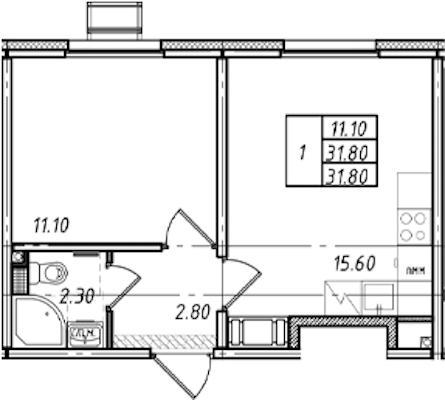 - Площадь31,8 м2
