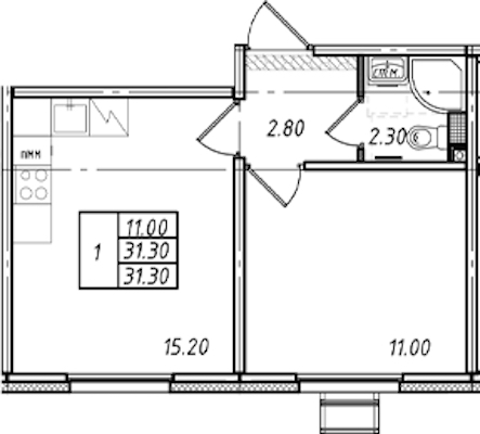 - Площадь31,3 м2