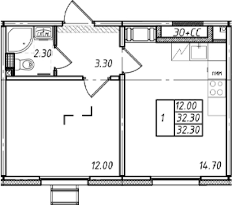 • Площадь32,3 м2