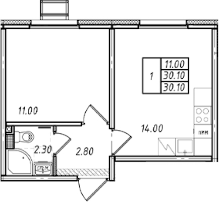 Однокомнатная квартира на 2-ом этаже 30,1 кв.м