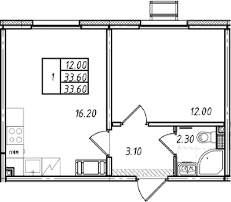 • Площадь33,6 м2