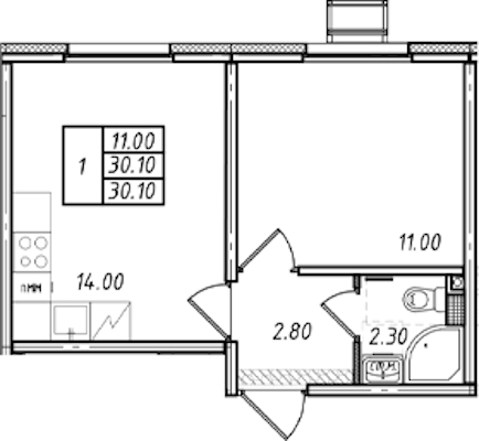 - Площадь30,1 м2