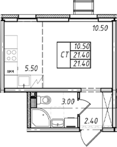 Квартира-студия на 2-ом этаже 21,4 кв.м