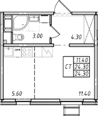 Квартира-студия на 4-ом этаже 24,3 кв.м