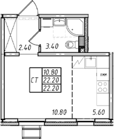 - Площадь22,2 м2
