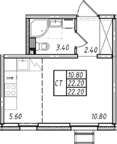 Квартира-студия на 7-ом этаже 22,2 кв.м