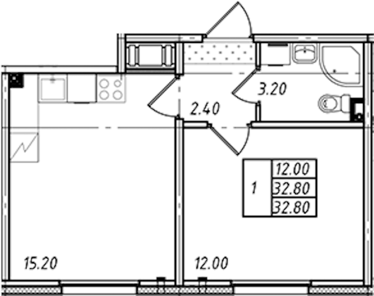 - Площадь32,8 м2