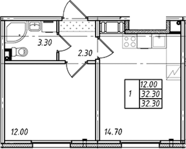 Однокомнатная квартира на 10-ом этаже 32,3 кв.м