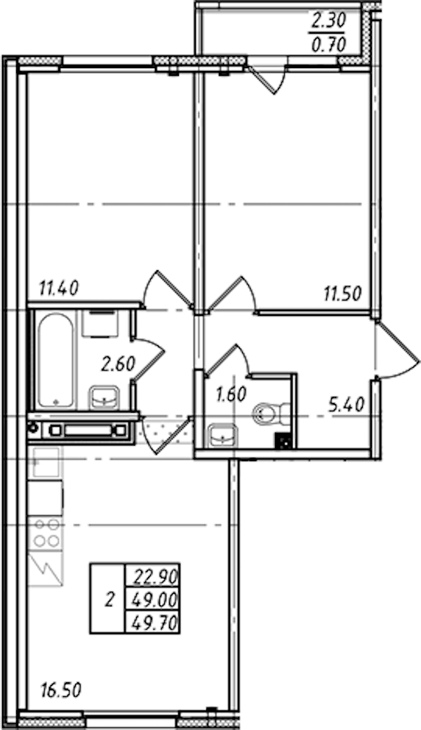 - Площадь49,7 м2