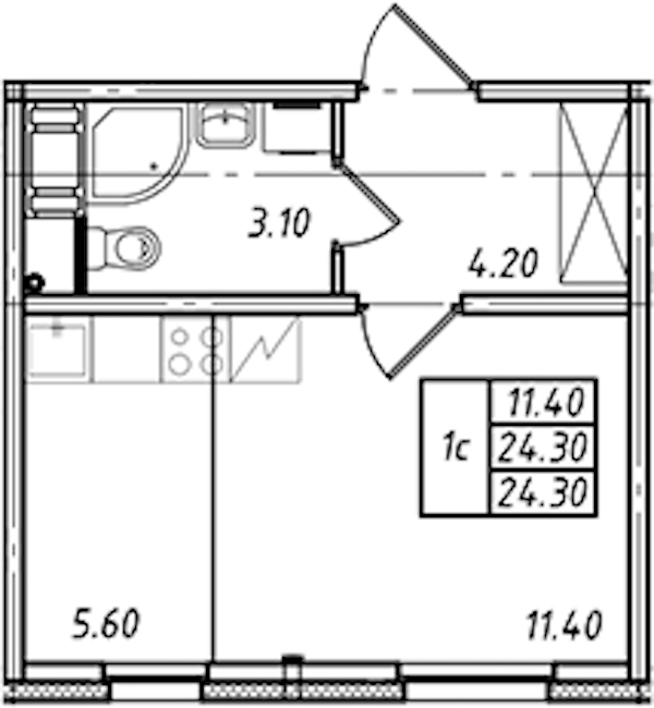Квартира-студия на 11-ом этаже 24,3 кв.м
