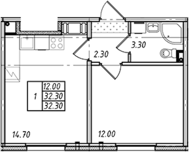 - Площадь32,3 м2