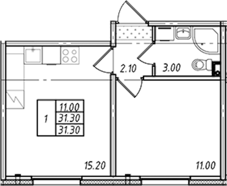 Однокомнатная квартира на 2-ом этаже 31,3 кв.м