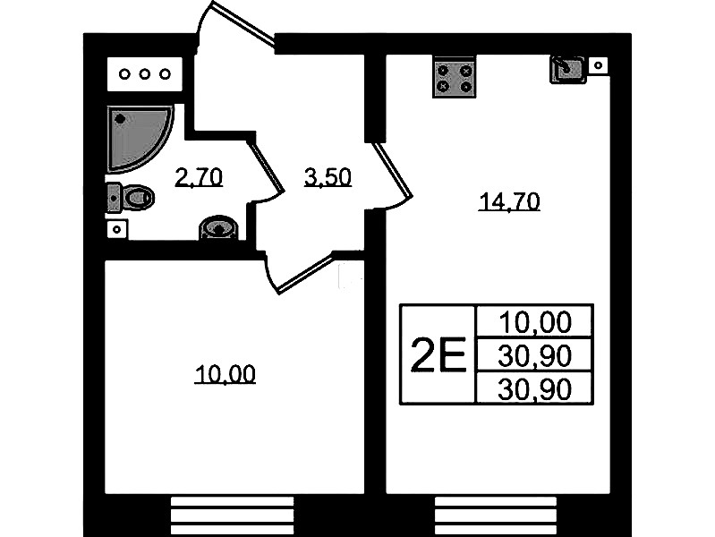 Однокомнатная квартира на 8-ом этаже 30,9 кв.м