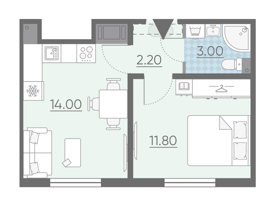 - Площадь кухни14 м2