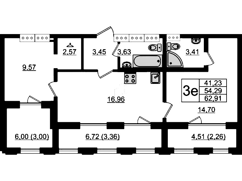 - Площадь62,91 м2