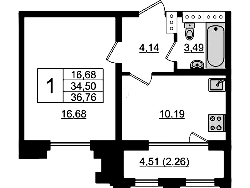 - Площадь36,76 м2