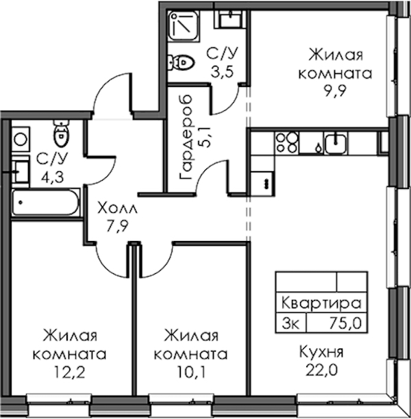- Площадь75 м2