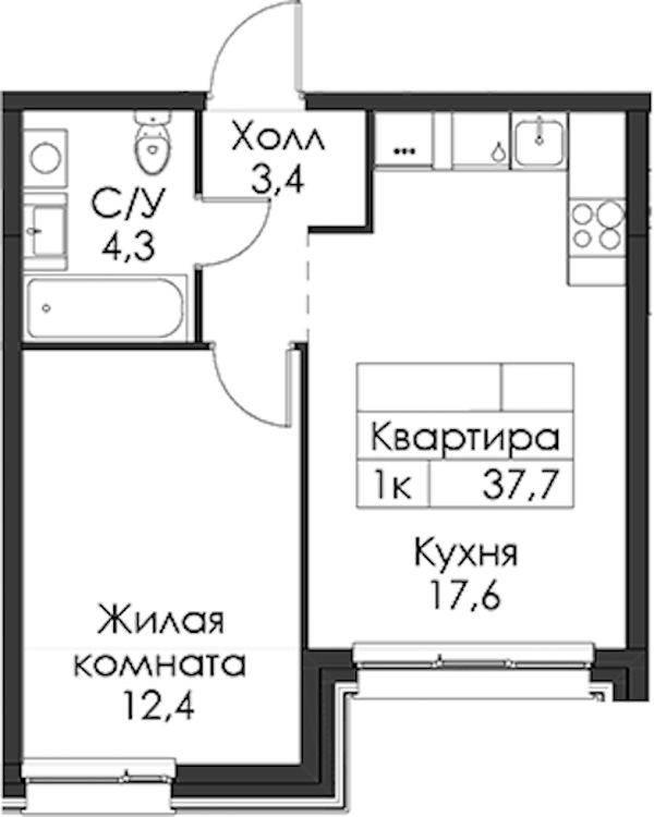 - Площадь37,7 м2