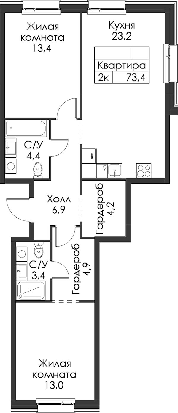 - Площадь73,4 м2