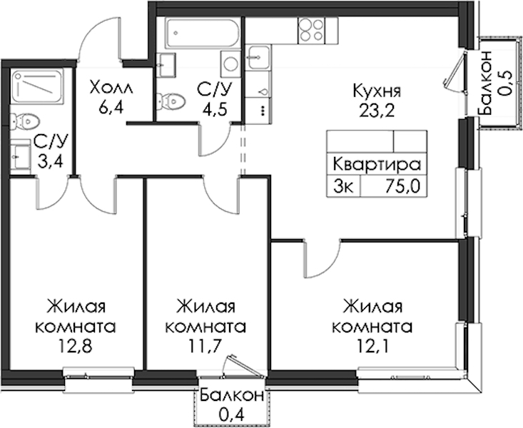 • Площадь75 м2