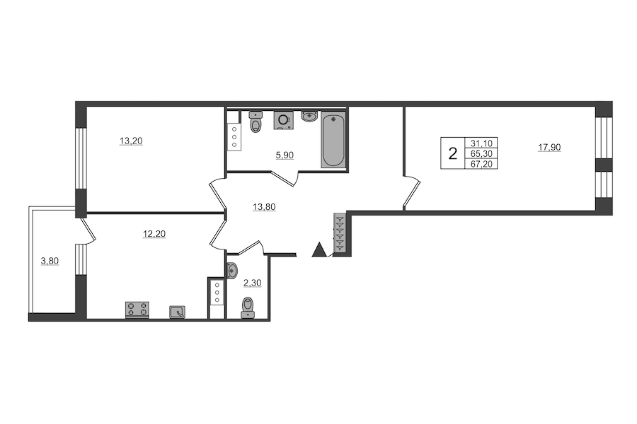 - Площадь66,6 м2