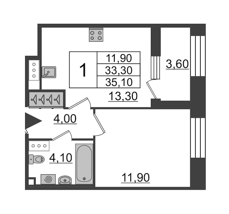 • Площадь33,7 м2