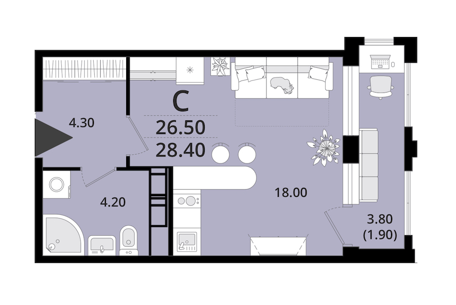 • Площадь28,4 м2