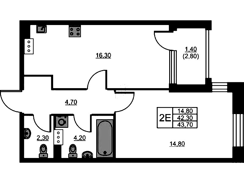 Однокомнатная квартира на 11-ом этаже 43,7 кв.м