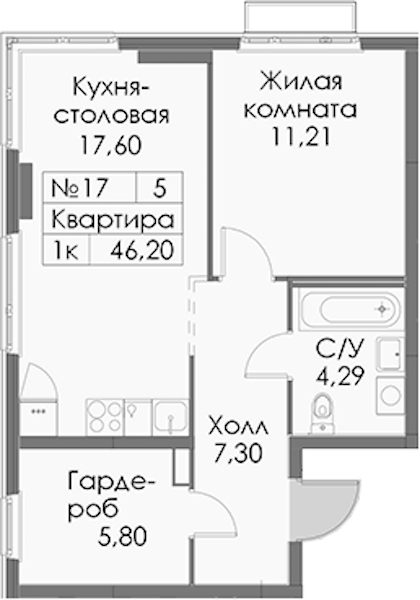 • Площадь кухни17,6 м2