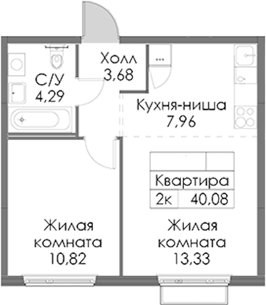 • Площадь40,08 м2