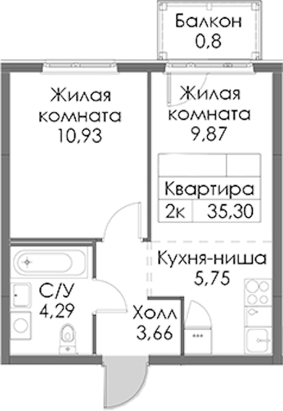 - Площадь35,3 м2