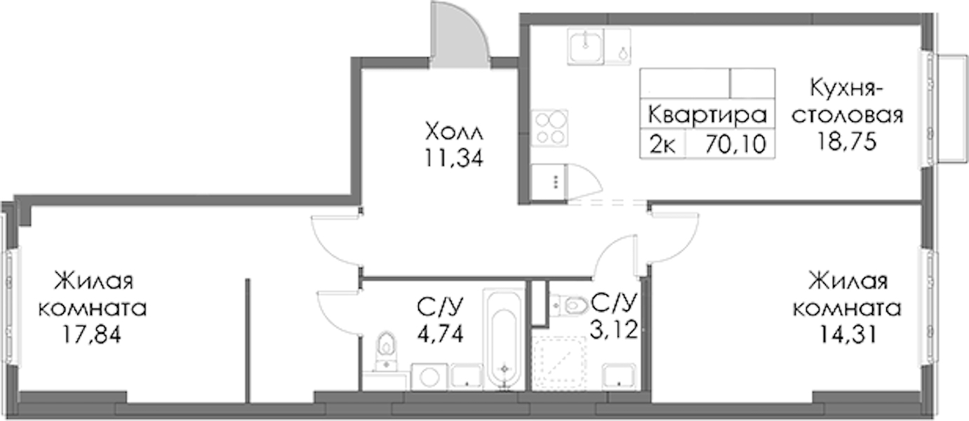 - Площадь70,1 м2