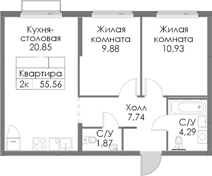 • Площадь55,56 м2