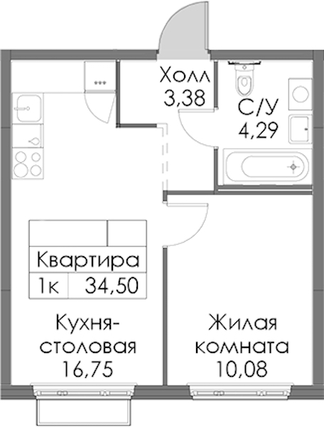 - Площадь34,5 м2