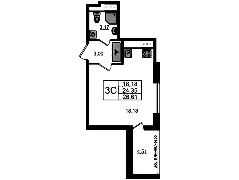 - Площадь24,35 м2
