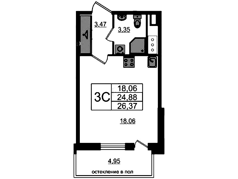 Квартира-студия на 10-ом этаже 24,88 кв.м