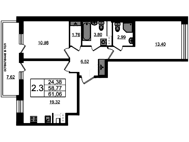 - Площадь58,77 м2