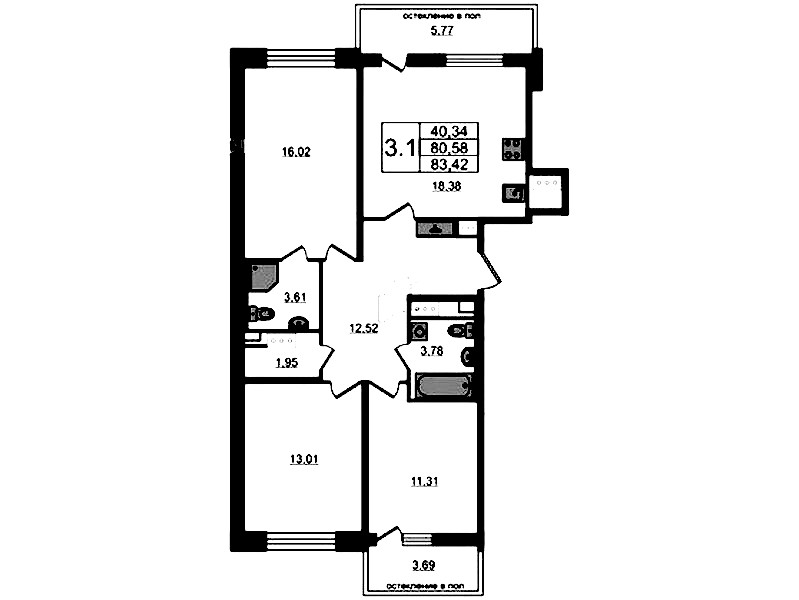- Площадь80,58 м2