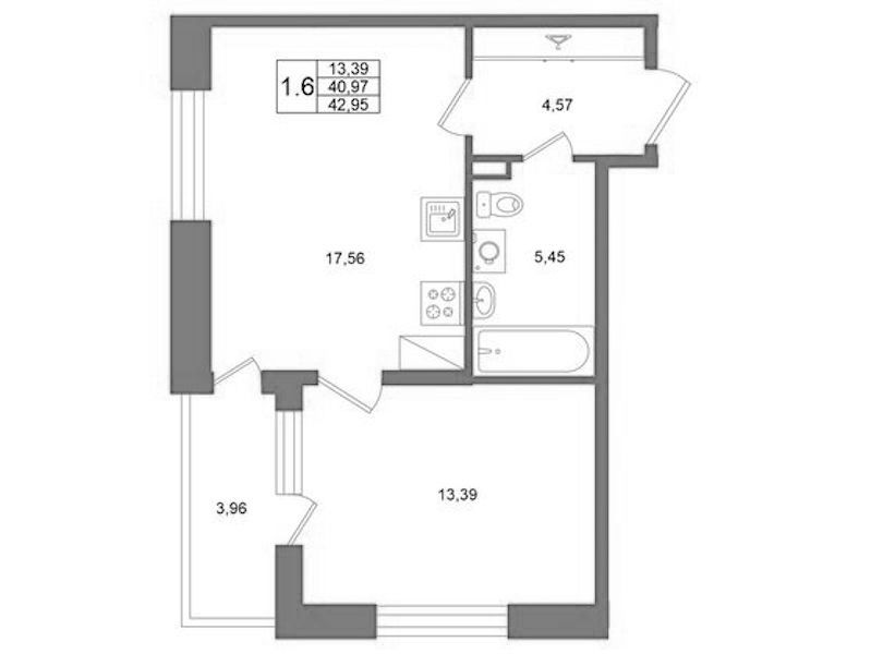 • Площадь40,97 м2