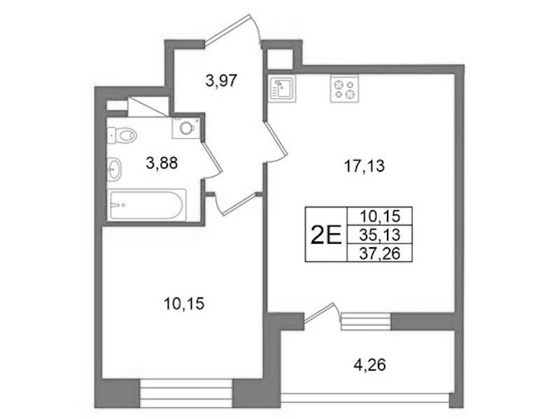 Однокомнатная квартира на 10-ом этаже 35,13 кв.м