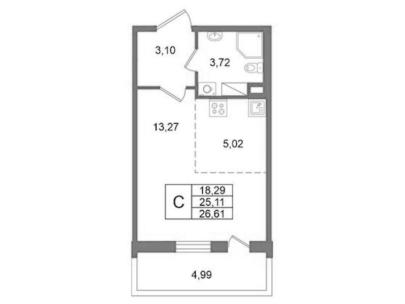 Квартира-студия на 10-ом этаже 25,11 кв.м