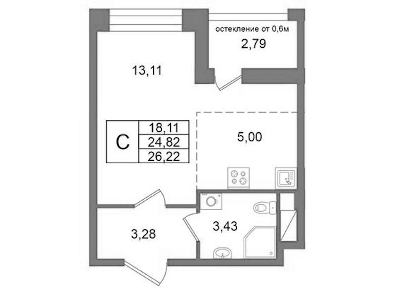 • Площадь24,82 м2