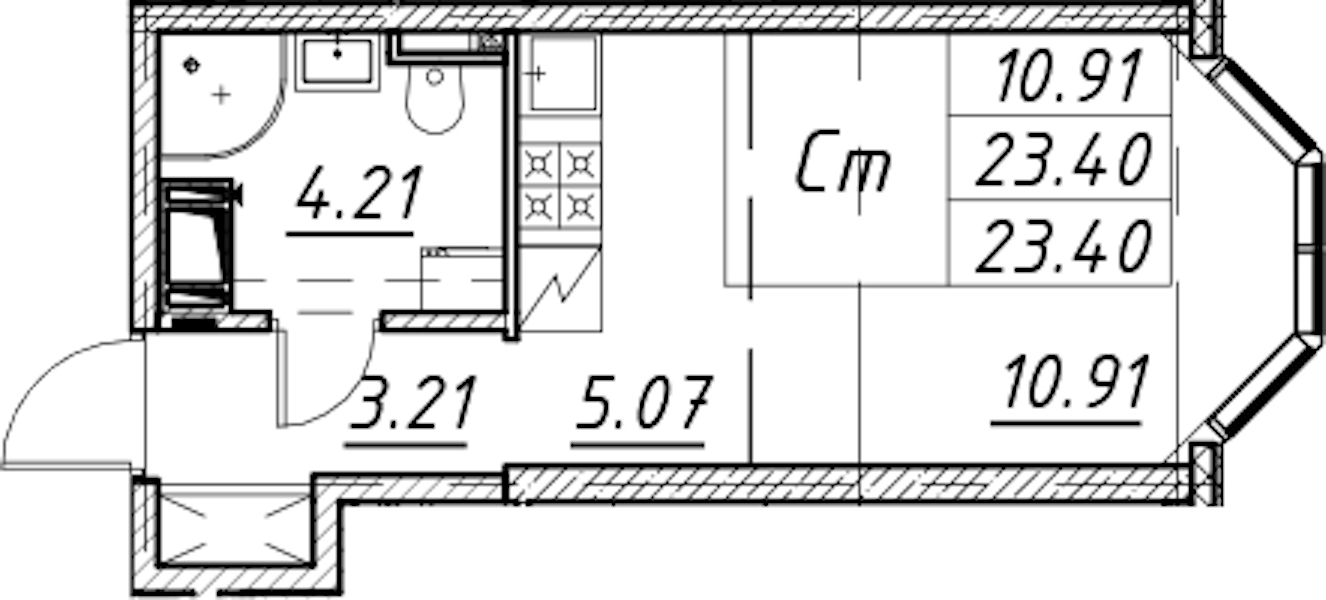 • Площадь23,4 м2