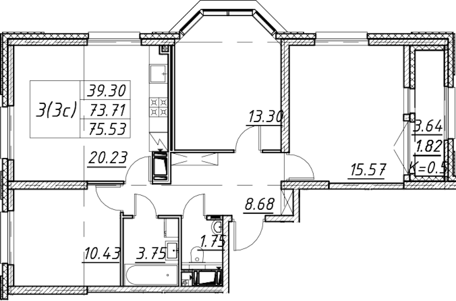 - Площадь75,53 м2