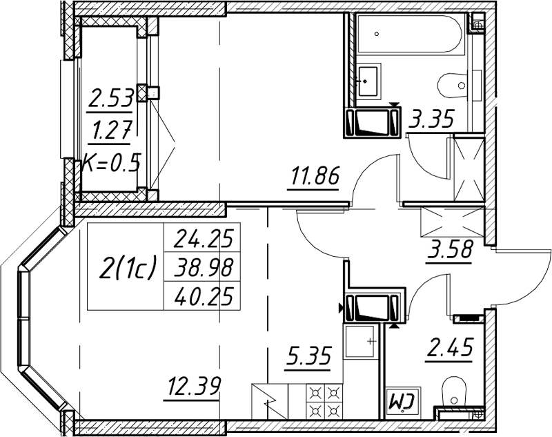 - Площадь40,25 м2