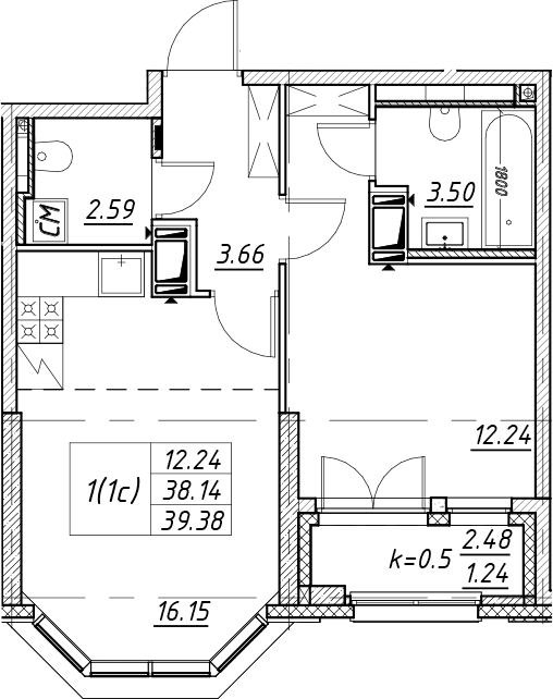 • Площадь39,38 м2