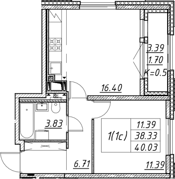 - Площадь40,03 м2