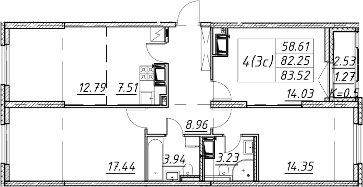 • Площадь83,52 м2