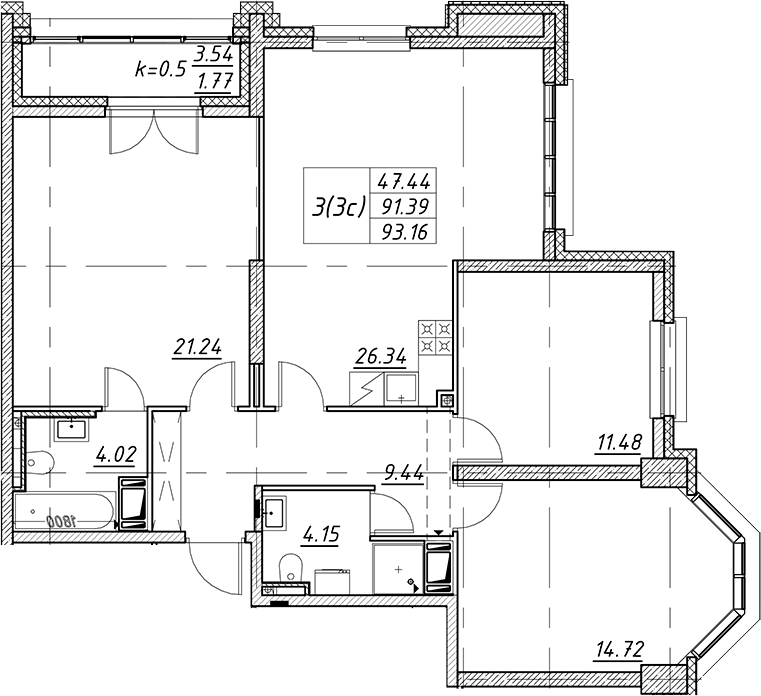 • Площадь93,16 м2