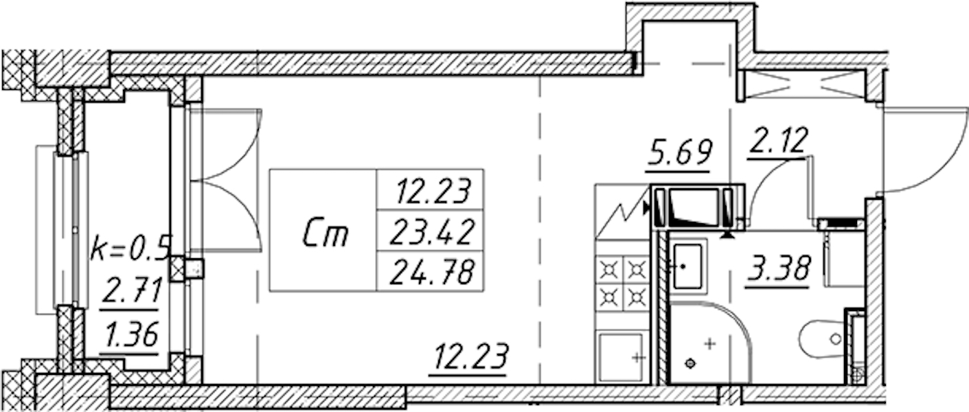 - Площадь24,78 м2